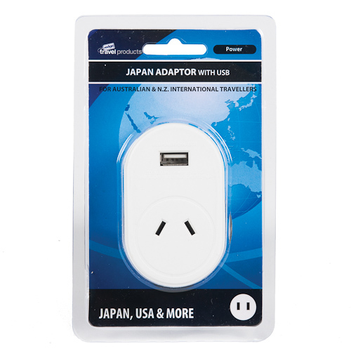 This Japan Travel Adaptor will only accept two-pinned Australian and New Zealand plugs without earth. Designed with two flat vertical parallel pins, the Japan adaptor is similar to the US adaptor, only without the grounding pin. It will plug into US power outlets, but the US adaptor with the grounding pin will not plug into Japanese power outlets. The USB charging port is compatible with most Apple ® products. This adaptor allows for use in a number of exciting places all over the world.